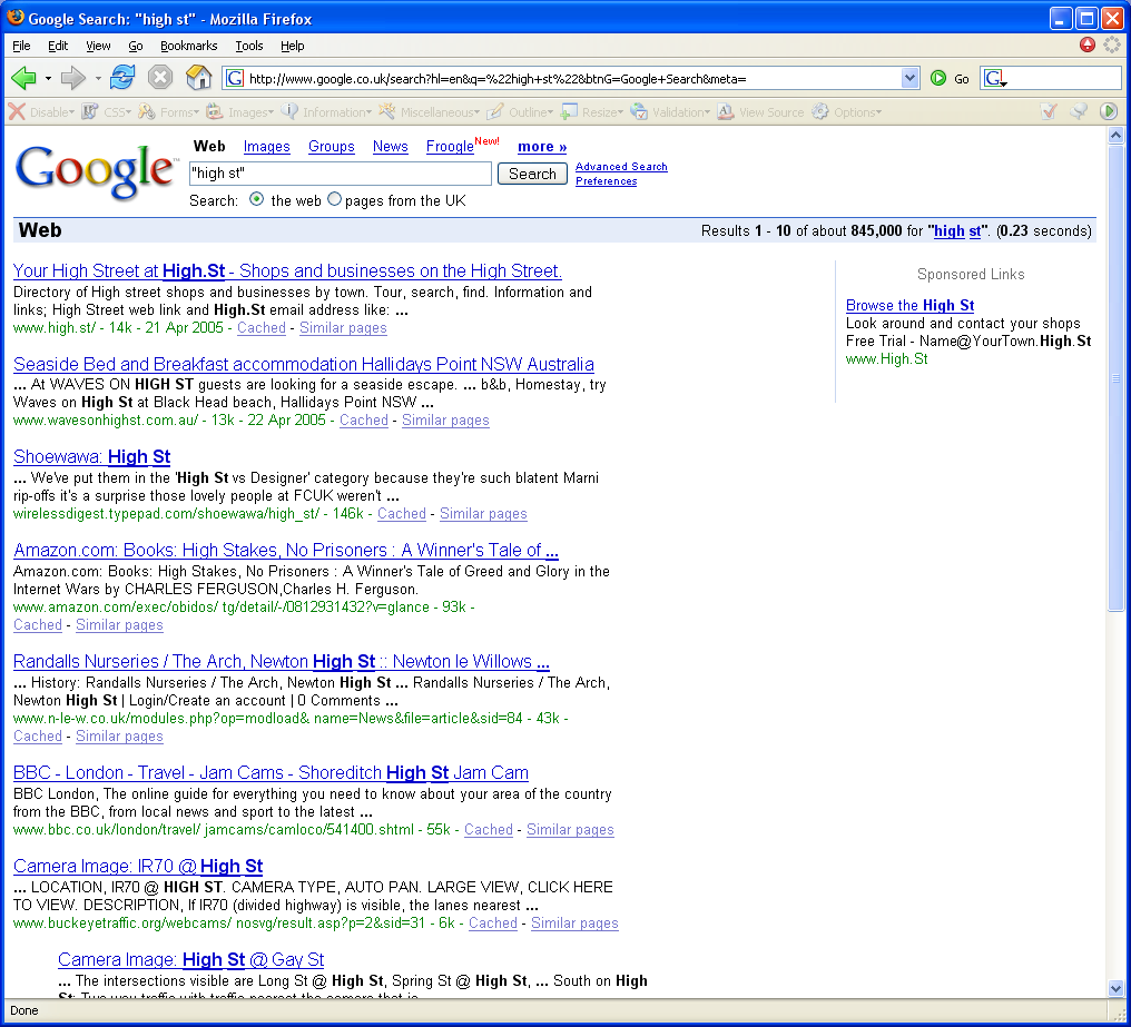 | No. 1 search result* for "high st" on Google, Yahoo, Altavista and alltheweb. | |